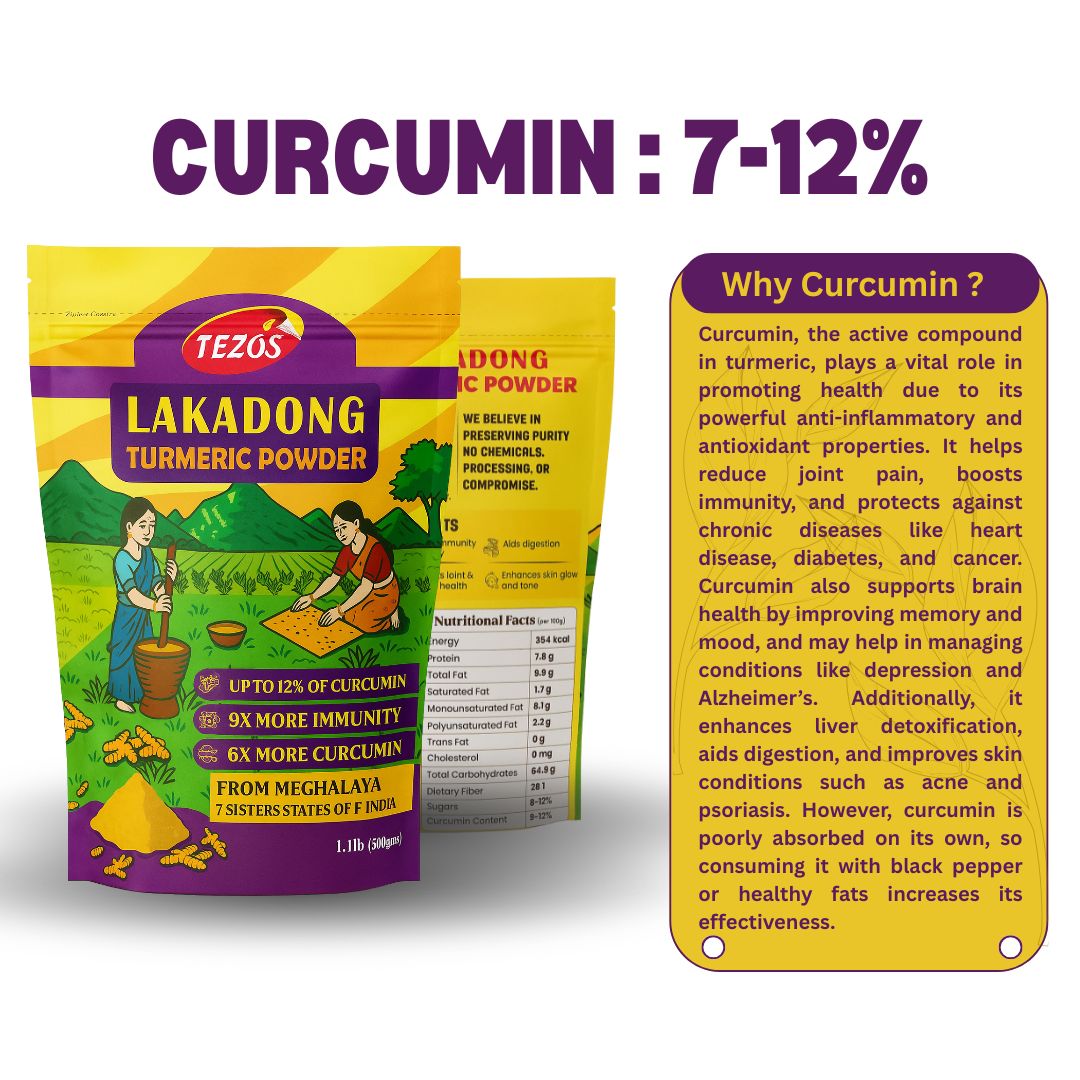 - Contains 7–12% natural curcumin (vs 2% in regular turmeric)